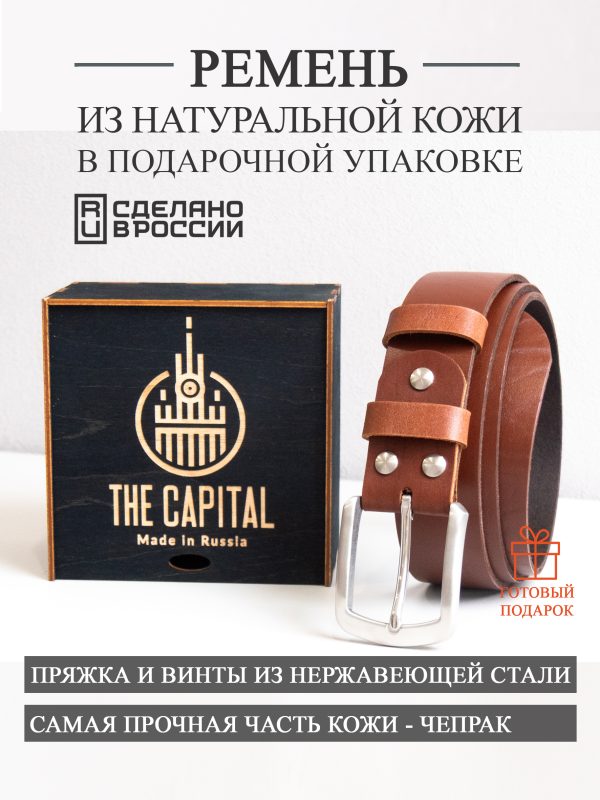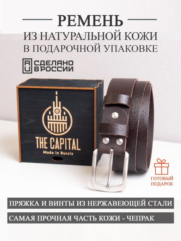Ремни из натуральной кожи российского бренда The Capital – классический стиль вашего образа. Премиальная кожа (чепрак), фурнитура из нержавеющей стали и ручная работа — идеальный выбор для тех, кто ценит высокое качество, долговечность и практичность. Каждый ремень изготавливается с вниманием к деталям, сочетая проверенные технологии и традиционное мастерство. Эти ремни созданы, чтобы служить вам долгие годы, сохраняя свой первозданный вид и функциональность.