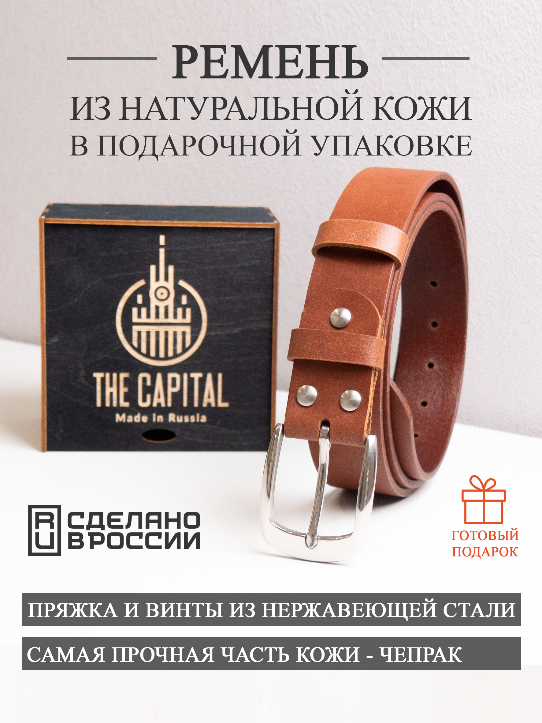 Ремни из натуральной кожи российского бренда The Capital – классический стиль вашего образа. Премиальная кожа (чепрак), фурнитура из нержавеющей стали и ручная работа — идеальный выбор для тех, кто ценит высокое качество, долговечность и практичность. Каждый ремень изготавливается с вниманием к деталям, сочетая проверенные технологии и традиционное мастерство. Эти ремни созданы, чтобы служить вам долгие годы, сохраняя свой первозданный вид и функциональность.